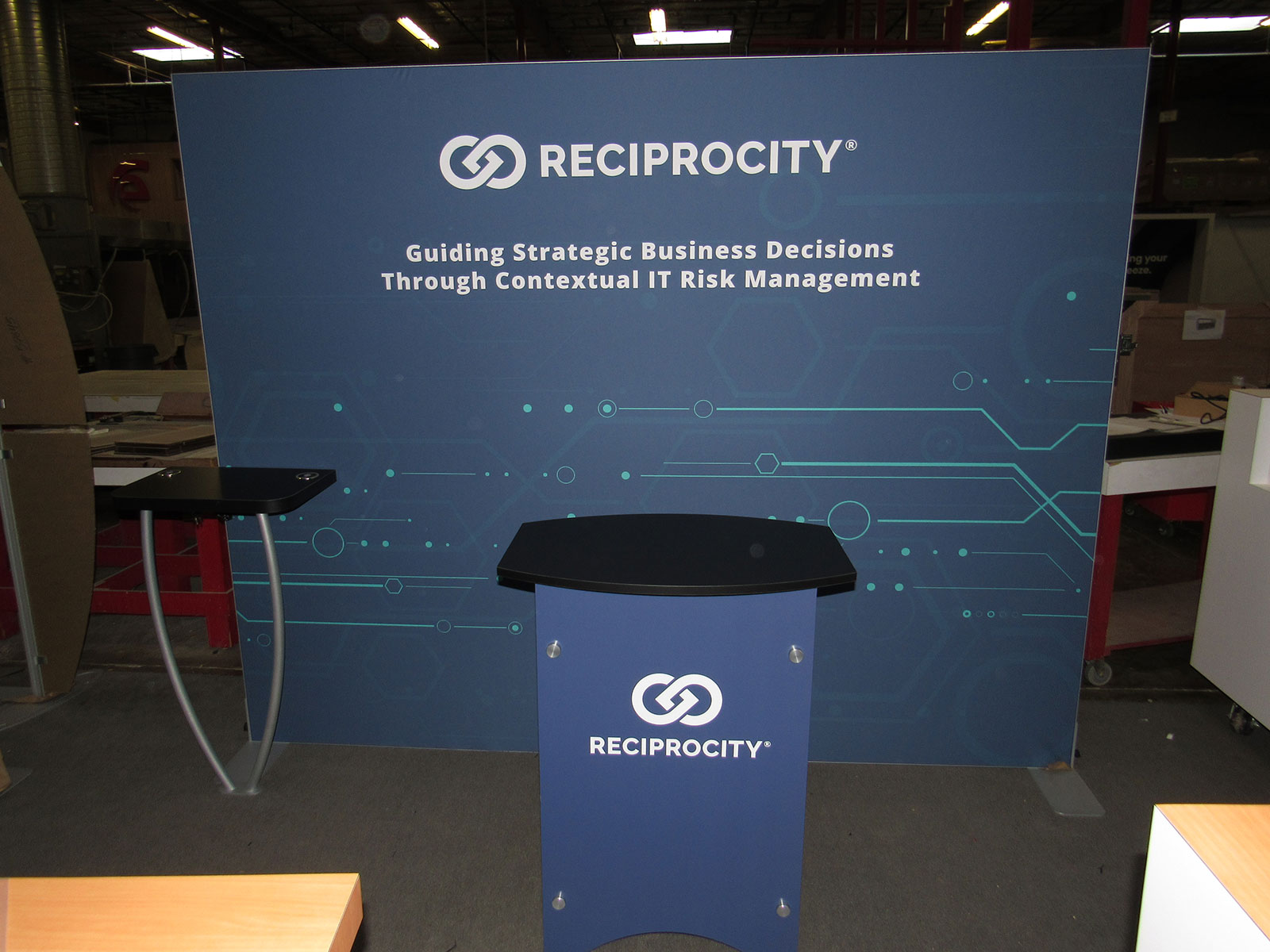 Counter, Monitor Mount, SEG Fabric Graphics, and Backwall